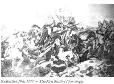 The Battle of Saratoga, New York, occurred in 1777 in which Brigadier General Daniel Morgan with his frontiersmen won a victory over the British and in which 6000 British troops surrendered.