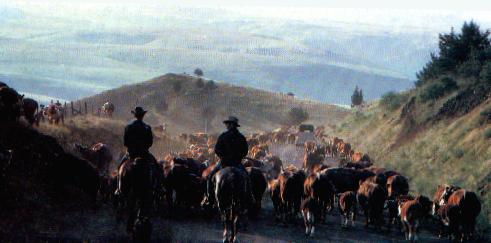 A FAMILIAR CATTLE DRIVE SCENE IN EASTERN WASHINGTON OR NORTHEASTERN OREGON