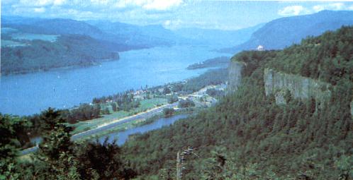 THE COLUMBIA RIVER IN OREGON DOWN WHICH MANY OF THE PIONEERS ON THE OREGON TRAIL RAFTED TO PORTLAND