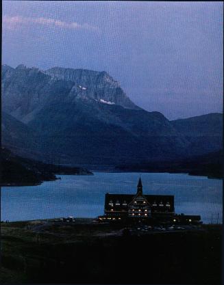 Glacier National Park in Montana and Waterton National Park in Canada share an International Park at the Canadian border at Alberta Province. The famous Canadian Pacific Railroad Lodge in the foreground.